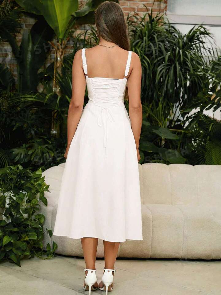 'Cami' is your perfect for all Seasons one and done dress. Cut from a breathable twill fabric, it's boned through the bodice to cinch the waist and has a sweetheart neckline with underwired cups. The barely there straps adjust for the perfect fit and we love how the gathering adds pretty volume to the midi skirt.
