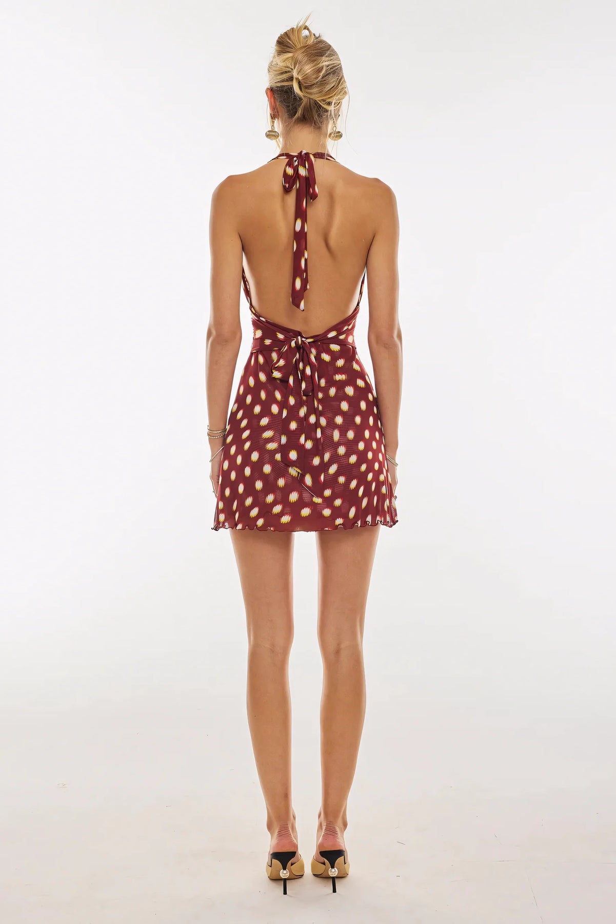 Say hello to the Clint Mini in Spice. A showstopper wrapped in sultry spice tones and hypnotic patterns. This halter neck mini is made to celebrate your confidence with a daring plunge, cinched waist, and a playful hemline. From casual days to dressy nights, it turns every glance into a double take.