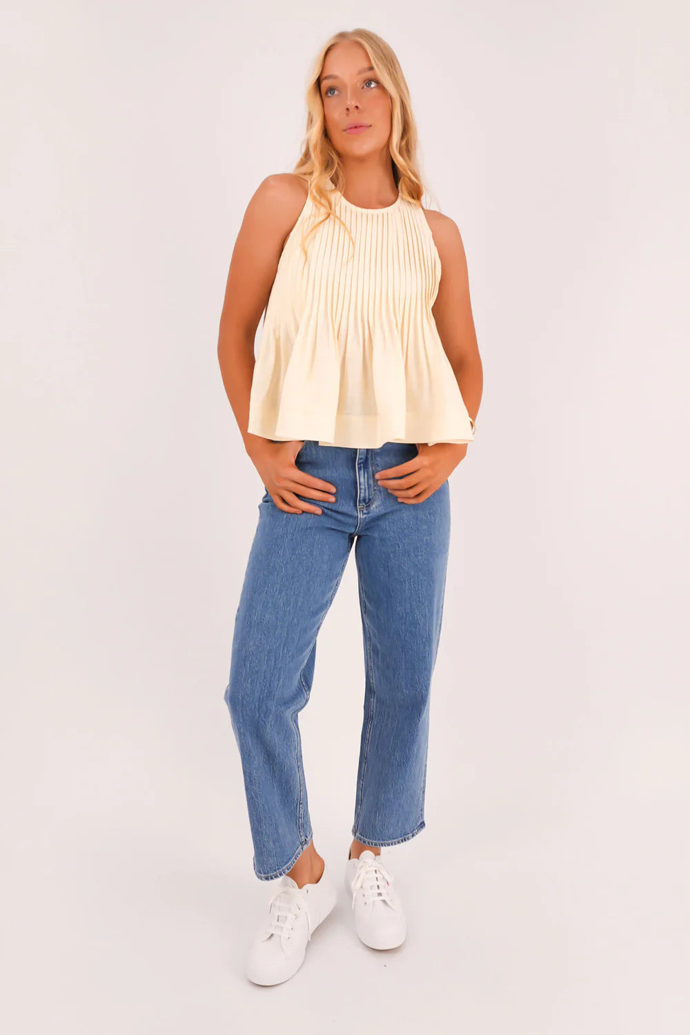 Crafted with a pleated front and flowy silhouette, it drapes beautifully while staying airy and breathable. The back keyhole detail adds a subtle touch of elegance, making this a timeless wardrobe staple.